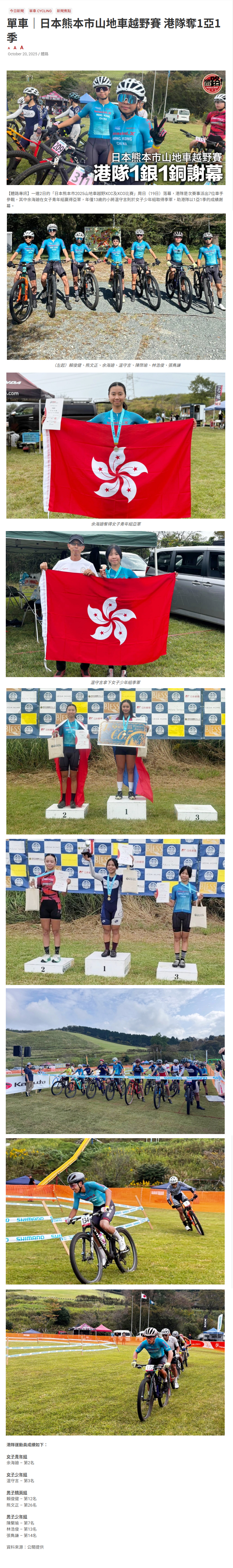 單車|日本熊本市山地車越野賽 港隊奪1亞1季
