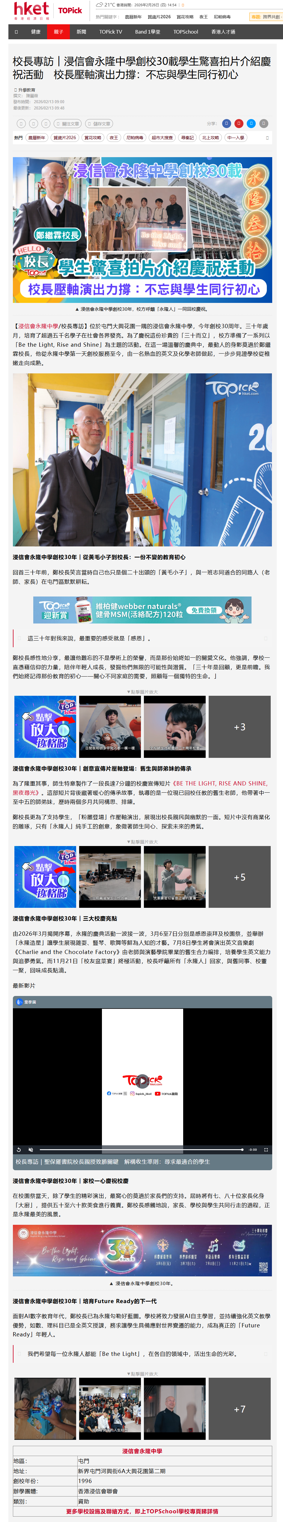 浸信會永隆中學創校30載 學生驚喜拍片介紹慶祝活動 校長壓軸演出力撐:不忘與學生同行初心