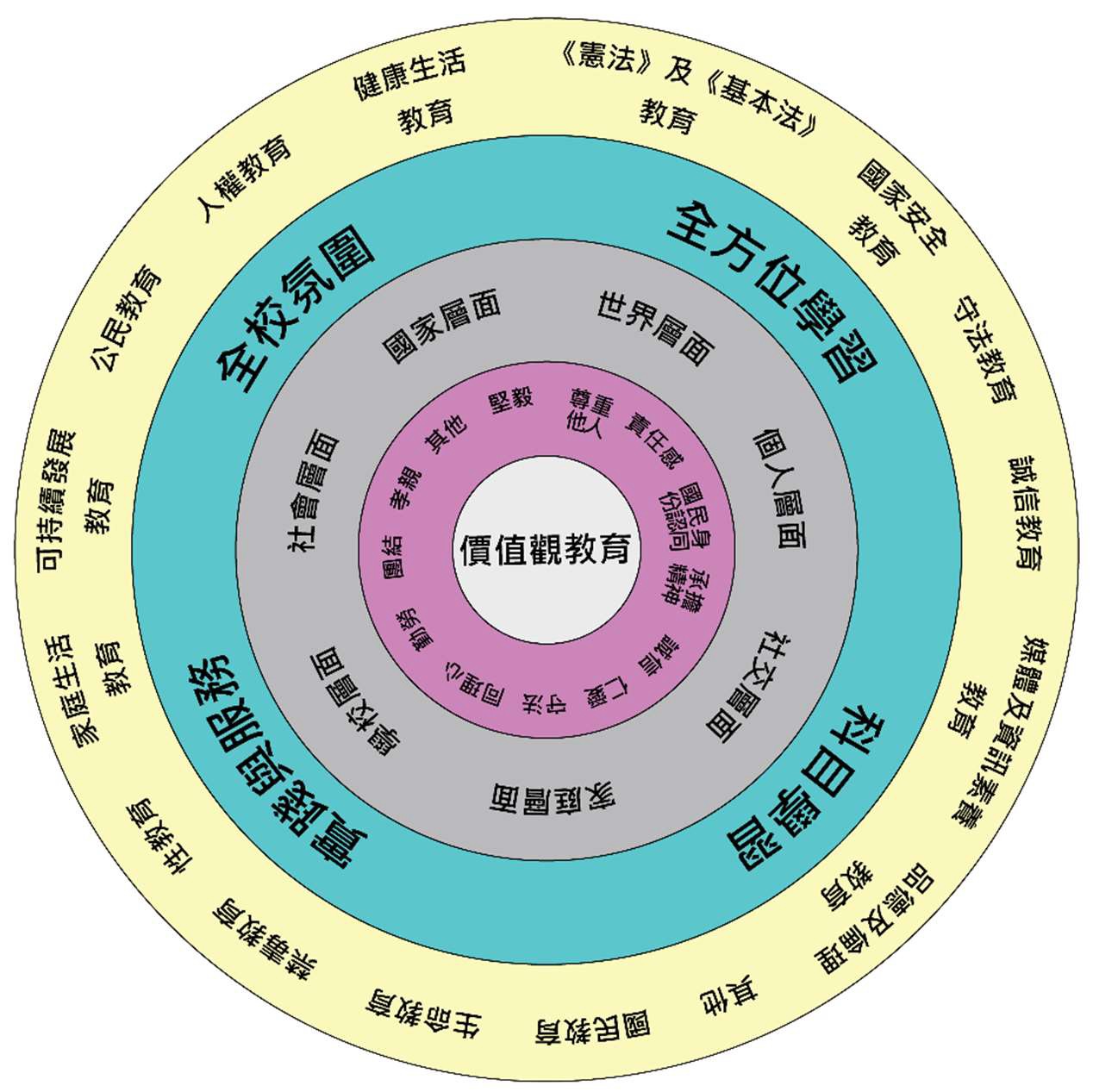 課程發展議會編訂《價值觀教育課程架構》(試行版),為學校於課堂內外規劃價值觀教育提供建議和示例,以幫助學生從小建立正確的價值觀,以積極的態度面對在學業、生活和成長中遇到的挑戰。
